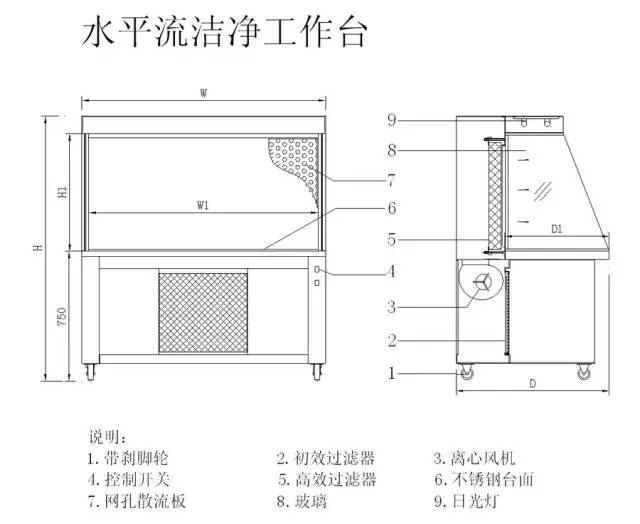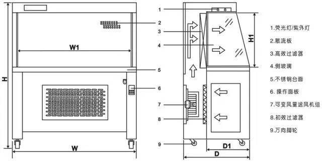 水平送風(fēng)的超凈工作臺:潔凈風(fēng)是從人的對面水平吹出來的,沒有玻璃隔離。
