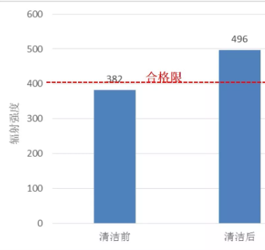 事實是不是如此呢?以數(shù)據(jù)來說話。下圖是紫外燈在清潔前后的輻射強度結(jié)果比較。